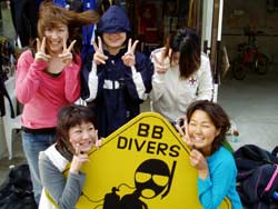 まいど〜ひろあきです!!!今日は久しぶりにうピーカンのお天気で最高に気持ちいいっす!!でも海は北風がビュービュー吹いてちょっと荒れ気味。。。という事でゴリラチョップまでブイーーンと車を走らせて行ってきました!メンバーは昨日に引き続きアンパンマンゆきとミッキーミッコ、そしてお久しぶりのヤスイちゃん、そして初BBの若干18歳のサラちゃんでファンダイブしてきました☆OW2日目のみえちゃんも一緒だったけど、みえちゃんはノリコとマンツーマンで講習。とりあえず1本目はのんびり水中の砂漠で癒されてきました!!透明なエビみたりホントに目を凝らさないと見えないような透け透けの魚をみたり気持ちよかったね!!でもみんなちょっと寒そうでした・・・。笑 |