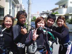 はーーーい!どーもワッショイワッショイ!!ワンタンです!!どっからどーーー見ても目が細いでーす!今日は目の前の海がガチンコだったので、移動してジョン万ビーチに移動してダイビングをしてきました!初の体験ダイビングをしてくれたのはミホさん!ミホコさん!シホさん!ケイさん!ミカさんの五人でいってきました!皆とっても最高に上手かった!!ジャンジャン泳いでましたね!!今度は沖縄にもたくさん違うところで潜ることができるから、そっちに行ってミヨーーね!! |