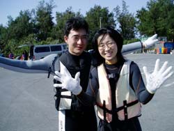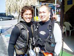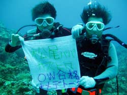 こんにちわぁぁー!!今日は、一昨日からOWダイバーになるために頑張ってきた2人!!つっさんとさってぃデス♪♪今日は、スクール最終日ということで、まず1本目にコンパスや中性浮力の練習をしました!!2人とも、なかなか上手に中性浮力とれてましたよ♪♪そして、ラストDIVE☆中性浮力をとりながら、ぷかぷか泳いでダイバーのアイドル☆カクレクマノミ☆ニモくん☆を見に行きました!!かわいかったねぇぇー!!そして・・・ OWダイバーの誕生です!!おめでとーございます!!3日間本当におつかれさまでした!!これで、2人はもぉ立派なダイバーです!!これからも、いろんな海でたっくさんダイビングしまくちゃってくださいね♪♪そして、沖縄の海にもまた遊びに来てください!!また〜一緒に潜りましょうねぇぇー☆☆☆ |