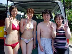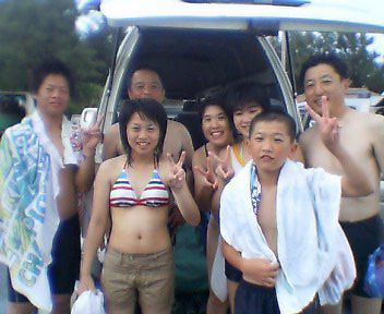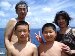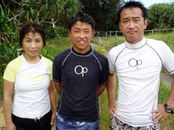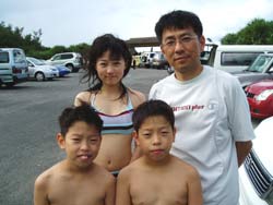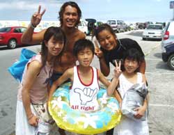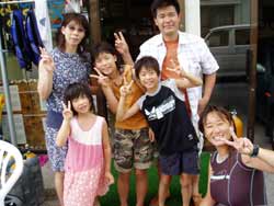 本日11時からは砂辺にてのスノーケル!熊本からお越しの元気な荒木さんファミリーと一緒に遊びました。メンバーはやさしい、昌孝パパ&さとみママそして、とっても元気でかわいい、愛ちゃん(10歳)&りょうたくん(9歳)&さやかちゃん(6歳)です。まずは、ウェットスーツにお着替え!ちよっぴり来にくいけれど、これも体験だね!そして説明。みんなとっても良く聞いてくれました。それから、いよいよ海へ!!浅いところから、かわいいおサカナが荒木一家をお出迎え♪そして少しずつ沖へ。ニモの仲間をみたり、おサカナにエサをあげたり、写真をとったり、良くあそんだね。 沖縄の海の中はどうだったか?みんなとーってもじょうずだったよ。また遊びに来てね〜!またしいたけみたい貝ガラひろおうね。(^^) |