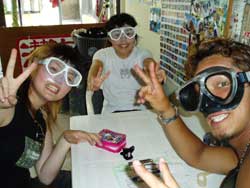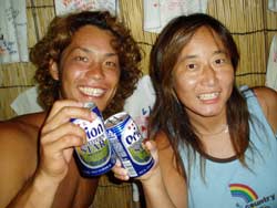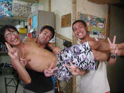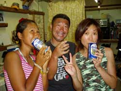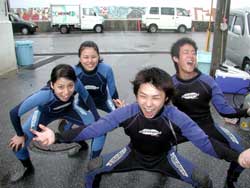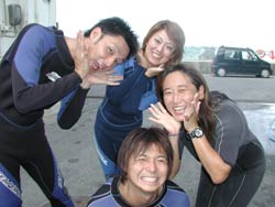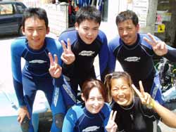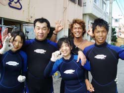 今日は久しぶりの大雨!!!すっっばらしいダイビング日和となりました★(^0^)なかなかできない貴重な体験をしに来てくれた(?)FANダイバーは7人もいますよー(^0^)本日一緒に潜ってくれたのは、3日間かけてAOWをとりにきてくれた、中旬まで沖縄に仕事で来ている、トミーこと、富永さん!!1日にも遊びに来てくれた、みほちゃん!OWを二日前に取って今日はファンダイビング!一見COOLに見えるのに話すとナイスキャラな森さん!昨日にダイバー認定して、本日ラストダイブの祐平君!!この写真には載ってないけど、超ベテランダイバーのリピーターさん、加瀬さん!!そして右の写真では影の様にうつってるけど後ろの方〜〜にいるのはまーちゃんとみっちゃん!!この愉快な仲間達と、今日は真栄田岬と砂辺に潜ってきました♪大雨の影響で階段が滝のように水が流れて水面はまっ茶色の真栄田!!手をつないでもつないだ先が見えないくらいの透明度で、かなり笑えました(^0^)でもチェーンの下の方に行けば全然平気★洞窟もいつもに増して真っ暗でしたが、そんな真栄田はなかなか見ることはできないですよ〜(笑)二本潜ってから店に戻り、森さんとトミーさんと加瀬さんと4人で砂辺で潜ってきました!かなりキレイに見えましたね(^^;)そんなこんなで今日もとっても楽しかったですね!!みんな今日で最終日がほとんどですね(;。;)みんなまた遊びにきてくださいね〜!阿部さん夫妻&加瀬さんは明日も楽しみましょ〜〜〜★☆ |