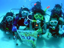 着FUNチーム。そして タッキーついに50本ダイバーおめでとう〜〜!!タッキーは BBに体験ダイビングで遊びに来てくれ その後オープン、アドバンス、レスキュー、かっこよく見えるダイバー講習、などなどを受講しての祝50本 おめでとう〜!そして チームながPとまーちゃんとみっちゃんの阿部さん夫婦が合流で、みんなでお祝い、やっぱり みんなでお祝いすると楽しいですよね。天気もよく。一本目の砂辺では さっチャンが・・・・・・・移動しました^^;海の中もエントリーも 真栄田岬は 最高でした。あの階段がなければ・・・・という事で 今日からリピーターの方がの来沖がはじまりました。タッキーさよう〜〜なら〜〜!次回は年末お逢いしましょう〜〜! |