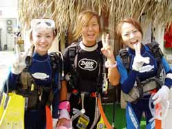 こんにちはぁ★まみでっす!今日は新しくOWダイバーさんが誕生しましたぁ!!!メンバーはかなこちゃん&のりこちゃんです☆2人はFUNで来ているサトミちゃんの高校時代のお友達(^^)2人は初めてのダイビング!ハードな2日間コースにも関わらず楽しみながら頑張ってくれました!初日の昨日はマスクを外すところまで頑張り、学科もほぼ終了。2日目の今日、まず1本目は残りわずかなスキルを頑張り中性浮力の練習をしながらすいすい♪そしてラストDiveにはサトミちゃんも一緒に潜りました!!ここではもう遊ぶだけ!ニモFamilyに挨拶したり、ナマコやヒトデをいじってみたり、myタケコプターを手に入れたり、組体操をしてみたり・・・抜き打ちテストをしてみたり、なぜかサトミちゃんもしてみたり(笑)そして無事にOWダイバーの誕生で〜す☆おめでとぉ〜!!!&お疲れ様ぁ♪♪これで3人ダイバー仲間だね(^^)v次はのんびり旅行でFUNダイビングしましょうね★楽しみに待ってまぁす!!! |