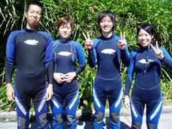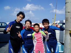 まいど!!13時からの体験ダイビングは石川県から遊びに来てくれた倉さんファミリーです!!初めてですが緊張感はなく、とてもリラックスした様子の四人。水中での練習も全然問題なくすぐエントリーする事ができましたね☆みんな水中の呼吸や寄って来るたくさんの魚がよっぽど楽しいのかいつもニコニコ顔!いい写真とれてるといいですね☆またみんなで遊びに来てくださいね〜☆★ |