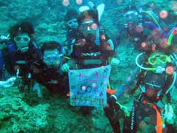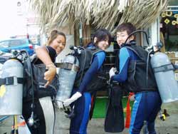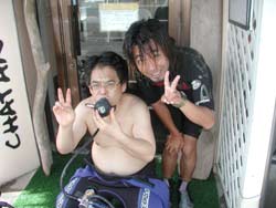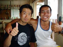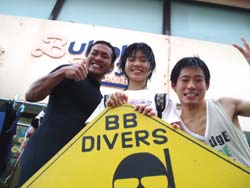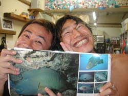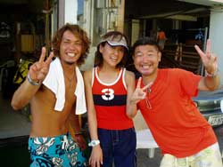 本日9時からの体験ダイビングは、大阪からお越しのバスケットをやっていたという西村哲也さん&かわいい西村まきちゃんです。はじめてのダイビングにドキドキしたけれど、写真をとったり、おサカナに餌をあげたりできたね。シマシマの魚や、長〜い魚もいたね。そして、まきちゃんうにをみつけて教えてくれました。(残念ながら、あんまりおいしくないだぁ〜。)余裕のバウは最初から最後まで、いわゆる放置プレイ!?すまんすまん。あがってスグにスクールスタート!明日の合格めざしてがんばってね! |