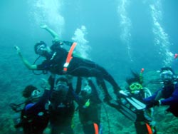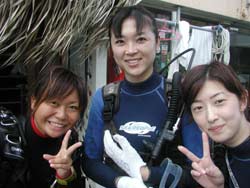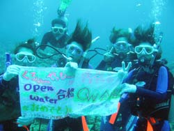 はいさい!!あかねです♪♪今日は〜OW講習です!!今日が最終日の☆さららちゃん☆だまりちゃん☆えりこちゃん☆つだちゃん☆です!!まず、1本目は中性浮力の練習をみんなでみっちりしました!!全員3日間の成果がでたね♪完璧でした♪えりこちゃんも、耳抜きがんばったね☆そして、いよいよラストダイブ!!2本目は、洞窟目指して行ったどー!!洞窟の蒼はすんごくキレイで感動したね☆最後に、みんなで魚にエサもあげて♪いーっぱい色んな魚が寄ってきたね〜♪そして最後に、水中で・・・ごーかーく祝いデス!!そして見事OWダイバーの誕生です!!おめでとーございます!!これからも、いろんな海でガンガン潜ってねぇぇー!!そして、またいつでも遊びに来てくださいねぇぇー!!3日間おつかれさま☆みんなとまた、潜れる日を楽しみにしてまーす!!まってるよぉぉー!!OW合格おめでとーございます★★★ |