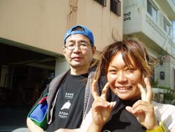 本日11時半〜体験ダイビングCコースに参加してくれたのは、沖縄在住の稲見亜矢子さん&京都からお越しの岩根弘幸さんです。亜矢子さんは、数年まえにライセンスをとって以来のダイビング弘幸さんは生まれて初めてのダイビング。説明→イメトレを済ませて海へ。2人ともなかなかうまいぞ!するるる〜って水深8メートルの世界へ。お魚にエサをあげたら、いーっぱい寄ってきたね。海中シーサーや本物ニモもみたね。ちーーっちゃな赤ちゃんニモがすんごーくキュートだった。海の中から見上げる水面はキラキラ、ラッキーな2人は水面雨バージョンと晴れバージョンの両方がみれました。さらーに、海の中の観音様にお願い事そしたり、最後は穴をくぐったりもしました。沖縄の海の中はいかがでしたか?また是非遊びに来てくださいね。弘幸さんは、ライセンスゲットどう?亜矢子さんは、ステップアップもいいかもよ。また会える日を楽しみにしてますね〜 |