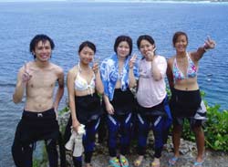はいさーい!健太郎でっす!!今日のスノーケル6体験ダイビング担当でっス!まず1発目に遊びに来てくれたのは男を残して女だけで遊びに来てくれた早耶ちゃん、みきちゃん、ゆかちゃん、みなこさん、このみちゃん、ダブルさちこさん!親戚同士での旅行で遊びに来てくれました!綺麗な海でしっかり遊べましたねぇ(^0^)/魚もたくさん!洞窟の中も蒼い光がめちゃくちゃきれいでしたねぇ!!みんなしっかり楽しめましたか??夏休みの思い出の1ページになってくれたらとっても嬉しいです!!またみんなで遊びに来てくださいね!! |