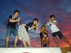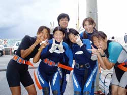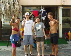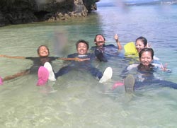 こんにちわ☆かのこです☆今日はとっても大勢!!!7人+かの&李くん☆総勢→9人で洞窟スノーケル!!メンバー紹介!かなえちゃん&かおりちゃん&ひろみちゃん・しんいち君&よしえちゃん・メリ&ゆかちゃん☆チームワークもばっちり!!ちょっとツワーガイドさんになった気分で行きますよぉぉぉ♪ちょっと波が高かったけど、いっぱいのお魚さんに囲まれて餌をみんなであげました☆洞窟の中も人がいっぱいだったけど、とっても蒼くてマイナスイオンたっぷり浴びてきましたよ〜☆帰りの崖もいっぱいの人で大変だったけど・・・これもまたイイ思い出だね☆また、遊びに来て下さいねv(o^o^o)v |