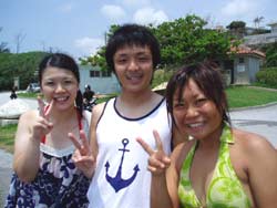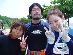 真ん中に写っているのは自称??モデルのアキちゃんと現在沖縄在住のチッチ!!!!二人とも初めからハイテンションで来店。説明をさささっと終わらせていざ海へ!!やはり水中でもテンションは高く魚たちと戦ったり、バック転をして水中の浮遊感を味わったりとはしゃぎまくり★いや〜遊びましたね!!チッチはせっかく沖縄に住んでるんだからたくさんダイビングしようよ!!アキちゃんもモデルに磨きをかけてまた来てくださ〜い!! |