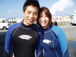 さあ〜本日最後の体験ダイビングは東京から遊びに来てくれた達郎さんと淳子さんです!!二人はとてもアウトドアで歩いて沖縄を観光しているのです。おかげですごいサンダル焼けしてましたね(笑)水中は初めてのダイビングとは思えないくらいスムーズに入っていきましたね★フィンをはずして宇宙遊泳の感覚を味わったり観音様で遊んだりと水中を満喫しました!ダイビング楽しかったでしょ〜??残りの沖縄も楽しんでくださいね!! |