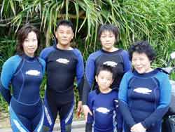 午後からの体験ダイビングで遊びに来てくれたのは大分県から蒲原さんファミリー、パパ、ママ、おばあちゃん、タカノリ君とミキちゃんの5名で潜ってきましたよ〜★お父さんは一回体験ダイビングをやった事があったので余裕で水中へ!そして初めてのみんなもしっかり練習して青い魚や黒いナマコなど水中生物を観察できましたね!!また沖縄に遊びに来た時にはダイビングやりましょうね!! |
