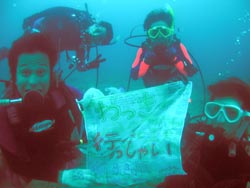 はいさい!!あかねです♪♪今日は〜OW講習です!!今日が最終日の☆ゆかちゃん☆お友達の☆めりちゃん☆OW2日目の☆ひろちゃん☆ダイブマスター講習中の☆えろっち☆がアシスタントとして入ってくれました!!まず、1本目は中性浮力の練習をみんなでみっちりしました!!みんなナカナカいい感じに止まれてましたよ♪そして、いよいよラストダイブ!!2本目は、みんなでコンパスナビゲーションです☆まぁぁ〜いろいろ暴走したチームもあったりでしたが・・・なんとかOKです!!今日の海は、いーっぱい色んな魚が寄ってきたね〜♪そして最後に、水中で・・・ごーかーく祝いデス!!そして見事OWダイバーの誕生です!!おめでとーございます!!これからも、いろんな海でガンガン潜ってねぇぇー!!そして、またいつでも遊びに来てくださいねぇぇー!!2日間短かったけどおつかれさまでした☆みんなとまた、潜れる日を楽しみにしてまーす!!まってるよぉぉー!!OW合格おめでとーございます★★★ |