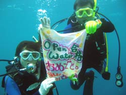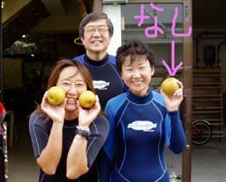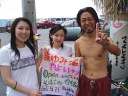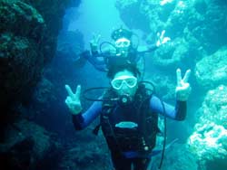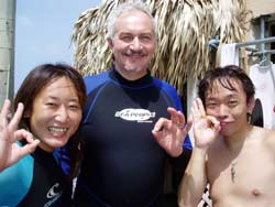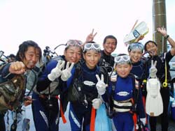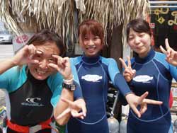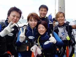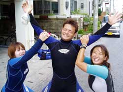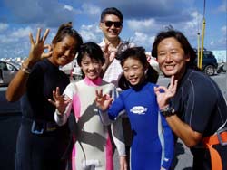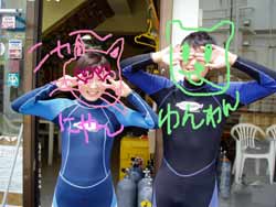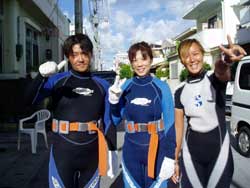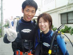 川口さん&ミホちゃんOW合格☆おめでとう〜〜〜〜!いやいや よく頑張りました。初日は バランスも悪く おたおたしていましたが・・・3日目には 自分で器材を背負ったり すばらしいダイバーの誕生です。川口さんは せっかく沖縄に住んでいるので いっぱい潜って かっこいいダイバー目指してくださいね。次回はアドバンスに挑戦も面白いかもしれませんね!みほちゃんは 伊豆などに良く行くとの事なので これからは スノーケラーではなく ダイバーとしてカワイイダイバーを目指してね。また 沖縄の海で待ってるよ〜〜!次は ケラマに行ってカメをみよう〜! |