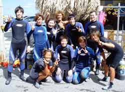 ん〜今日はすっばらしい一日でしたよ〜!!なんと本日6名のダイバーが誕生しました!!全員二日間はけんたろうさんが担当して、今日はみんな遊ぶだけ!(^^*)本日ダイバーの仲間入りをしたのは・・・!!しんさくさん・矢野さん・まさやくん・中本さん!そしてかずくん・かおりちゃん!!そしてそしてダイバー暦&人生の大先輩の石井さんの7名で真栄田岬で潜ってきましたよー!!偶然にも?みーんな青が好きとゆうことで(笑)、車の中でもみんなでわいわい騒ぎながら真栄田の蒼の洞窟までいってきました!洞窟はかなりキレイでしたねー☆しかも珍しくスノーケルの人たちがいなかったので、特別にあまり普段見ることのできない蒼も見に行って来ました!!(^0^)/みんな感動だったね(^^*)そんなわけでみなさんダイバーおめでとう〜〜〜〜!!!!これからもたくさん潜って石井さんみたいなステキなダイバーさんになっていってくださいネ♪ そして3本目は砂辺に戻って石井さんとラブラブマンツーFAN!!石井さんの好きなジョーフィッシュやモンツキカエルウオをみたり、チョウチョウコショウダイの幼魚を見たり・・・静かでまったりしたラストダイブでした(^^)みなさん今日は一日お疲れ様でした♪ |
