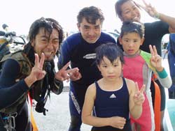 3時からの体験ダイビングに遊びに来てくれた兄弟!しょうた、みくちゃん、あいかちゃんの3人です。ドリフトレーサーのしょうたくんはかなりハンサムガイの甘いマスクをもった兄で たぶんおれもこれぐらいかっこよかったら もてるんだろうな〜〜なんて思いました・・・みくちゃんは 最初どきどきしていましたが 浅い場所での練習で全然大丈夫になりました。あいかちゃんは かのこがマンツーマンでしっかりアシストしたので 全然大丈夫 最後はみんな手を離し自由にスイスイ泳いで帰ってきましたね。次回は また ニモに会いに行きましょうね。ライセンスゲットも3人なら楽勝だね。 |