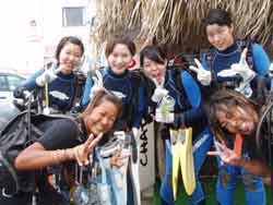 はいさい!!あかねです♪♪今日はケラマに体験ダイビングに行って来ました☆ゆみかさん☆じゅんじくん☆なつみちゃん☆まさみちゃん☆みほちゃん☆と一緒に行って来ましたー!!今日は、1日いーっぱい泳いだね〜!!みんな上手にスイスイ泳いでいましたね!!オレンジ色のキレイな魚の群れをみたり♪サメもいたね!!穴の中をひたすらぐるぐる回っていたね(笑)今日は、ケラマに行けてよかったね!!次は、ゆみかさん♪なつみちゃん♪じゅんじくんはライセンスにも挑戦してくださいね!!みほちゃん&まさみちゃんは、これからもガンガン潜ってよぉぉー!!みなさん♪また是非遊びに来て下さいねぇぇー!!また、いつでもお待ちしてますよー♪♪ |