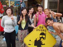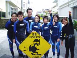 まいど〜ひろあきです!!本日もBBから新しいダイバーが誕生しました☆ひろしさん、しおんくん、やすちゃんの3名です!とにかくみんなやる気があって説明もしっかり聞いてくれて初日からガンガンスキルを終えていきました。若干12才のしおんくん、ちょっとマスクが苦手だったけど気合でなんとか乗り切ったね★よく頑張りました!そして運命の最終日!みんな泳ぎかたもしっかり上手になって中層にプカプカ浮く中性浮力もばっちり!!そして最後は遊びのダイビング!しおんくんは目が輝いていたね(笑)ニモを観察したりソフトコーラルをプニプ二触ったりと今までは遊べなかった分をしっかり満喫しました!そして午後からは最後の学科講習!!みんな眠い目をこすりながら頑張っていました。そして学科も終了してみんなでオープンウオーター合格です!!!!おめでと〜〜〜パフパフパフ〜★☆★☆本当に2日間お疲れ様でした。。また来年沖縄に来たときには是非遊びに来てくださいね!!待ってま〜す!! |