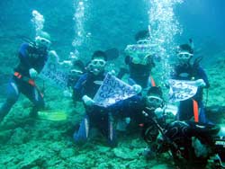 まいど〜ひろあきです!!本日はめでたくダイバーが誕生しました!!それは〜!!ディズニーランドの浦安から妙子さんと亮祐くんの仲良し親子と、顔がそっくりなミカチャンとタクヤ君の仲良し兄弟の4名です!!初日は初めてのダイビングと水中スキルに若干戸惑い気味だったけど、何回も練習するうちにどんどん上達☆いや〜見ててこっちも嬉しくなりますね★そして二日目に突入!学科もあってちょっと疲れ気味でしたが水に入るとみんなニコニコ笑顔でラストダイブをのんびりと楽しみましたね!泳ぎもびっくりするくらい上手になりました。そしてラストスキルを終了して見事OW合格です!!!!!おめでと〜★☆★☆★☆パフパフパフ〜!!いやあ〜みんなはもう立派なダイバーですよ!これからも是非潜りまくってくださいね!!また遊びに来てくれるのを楽しみにしていますね〜!!!! |