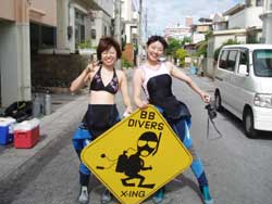 ハイサ〜イ!午後からは、元気な女の子2人との体験ダイビング!岐阜から、沖縄に1泊2日で遊びにきてくれた、ひろみちゃん&かおりちゃんです。飛行機のせいで、予約時間にちょっぴりおくれて、超8の字まゆげで、もうしわけなさそうに登場してくてた、ひろみちゃん、職業柄鍛えたダンボール筋でタンクをひょーいとかついぐかおりちゃん。楽しい2人です。海もはじめから上手で、肺での浮きし沈みもすぐにマスター!お魚にエサをあげたり、ニモファミリーの家をたずねたり、ふわふわ空飛ぶように泳いだりもしました。そして、アフターダイブでは、昭和の香りのする写真撮影!? 初めてのダイビングはどうだったかな?2人と一緒に遊べてりょうこ楽しかったわん!また遊びにくるんですよ〜。 |