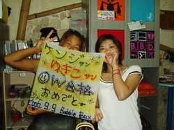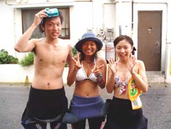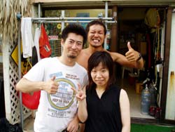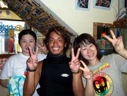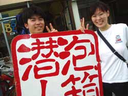 ハイサ−イ!りょうこです。12時からは元気な女の子りっちゃん&しょうちゃんが遊びにきてくれました。まず空港に行って、南にいくか?北に行くか?と相談し沖縄に飛んできたそうです。やるな〜なかなか男前だな〜(??)⇒の写真は忍法『まいったまいった』のポーズ。この忍法をマスターすると、マスクの中に入った水をだせるのだ!!初めは緊張もあったけど、2人とも水深8メートルの世界を満喫しちゃった!あきらめなければ、ほとんどの事はできるのだぁ〜2人とも大変よくできました♪ニモファミリーをみたり、写真を撮ったりお魚にエサをあげたり。。そして巨大う○こも発見!?初めてのダイビングはどうだったかな?あの日すれ違いできてくれたんだってね。本当に残念。。。。心のこりです。。。次の時は、がっつり飲もうね。来週にでもまた来てよん。(笑)2人と潜れてたのしかったよ。次にあえる時を楽しみにしてるからね。沖縄からもどってもがんばるんだぞ! チバリヨ〜!!(←沖縄のがんばれよ〜) |