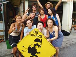 9:00からはスペシャル体験ダイビングイケメン2名がライセンス持ち、残り5名はライセンスは無いけど めちゃめちぇ うまかったです。一人耳抜きをしても 目から空気が抜けるので ちょこっと大変そうでしたが 全然みんな うまかったですね。ニモみて お花畑みて 水深10m以上行って、バブルリング作って、透明のエビをみて-20mを見下ろしながら 空を飛ぶように海の中を水中ツアー!さらに観音様にお願いをしてからさらにさらに 洞窟をくぐりかえってきました。ん〜〜とっても充実した 体験ダイビングだったね。今度は ライセンスゲットだね! |