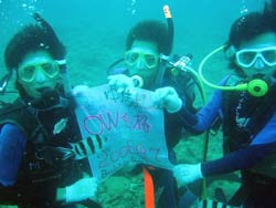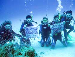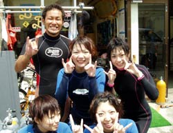 はいさい!!あかねです♪♪今日は〜OW講習です!!今日が最終日の☆みゆきちゃん☆よーこちゃん☆なおちゃん☆ふくちゃん☆です!!まず、1本目は中性浮力の練習をみんなでみっちりしました!!みんなナカナカいい感じに止まれてましたよ♪そして、いよいよラストダイブ!!2本目は、みんなでコンパスナビゲーションをしたり、緊急スイミングアセントでみんなでがんばってみたりと。。。最後のスキルも、みんながんばってこなしました!!今日の海は、いーっぱい色んな魚が寄ってきたね〜♪観音様もホントにいたでしょ!?そして最後に、水中で・・・ごーかーく祝いデス!!そして見事OWダイバーの誕生です!!おめでとーございます!!これからも、いろんな海でガンガン潜ってねぇぇー!!そして、またいつでも遊びに来てくださいねぇぇー!!みんなとまた、潜れる日を楽しみにしてまーす!!まってるよぉぉー!!OW合格おめでとーございます★★★ |