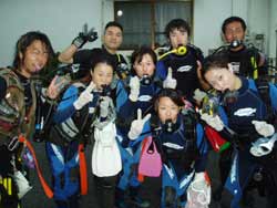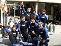 まいど〜ひろあきです!!!今日はにぎやかです!!ダイビングサークル「FRAT」のメンバーです!!その中の8名がアドバンスダイバーになるべく二日間の講習を頑張りました★メンバーはマサル ヨウコ ユカ サトシ アユサ フミ エイ の愉快な仲間です!!初日はディープとコンパスを頑張って講習☆★人数が多いけどそこはサークルの仲間という事でしっかり協力してクリアしました!!学科も猛勉強して一日で終了!そして二日目の今日は中性浮力と魚を観察!みんなで楽しみながら泳いできました!!そして講習ラストダイブはエコダイバーになるべくメッシュバックを持って行ってみんなで砂辺のゴミを拾ってきました!!ペットボトルや割り箸、スプーンなどなどいろいろありました。。。これからも海をキレイにしようね☆★という事でみんな見事アドバンスダイバー合格です!!!おめでと〜パフパフパフ〜〜〜!!!!!!!!次からは遊びのダイビングだね!!楽しんでいこう!! |
