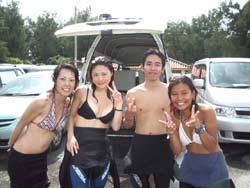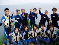 まいど〜ひろあきダムです!!今日は鹿児島県から賑やかな女の子10名が遊びに来てくれました!メンバーは、和代ちゃん、紘子ちゃん遥ちゃん、めぐみちゃん、幸恵ちゃん、しおりちゃん、美咲ちゃん、千愛ちゃん、裕ちゃん、みどりちゃんでっす!!みんな初めてで、耳抜きできるかな〜??っとか苦しくなったら・・・。っとか言ってたけど水中呼吸にもすぐ慣れてみんなで水中世界を楽しんできました!!水面きれいだったでしょ〜??いい写真あるといいね〜☆また遊びに来てくださ〜い!! |