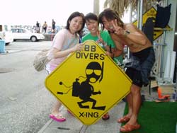 はいさーい!健太郎でっす!!今日は朝から天気もよくて砂辺の海もベッタベタ!そんなダイビング日和に遊びに来てくれた久未子ちゃんと未樹ちゃんの仲良し姉妹☆久未ちゃんは今回で3回目のBB来店!未樹ちゃんは初ダイビングだったけどめちゃくちゃ上手で3人で写真をパシャパシャ撮りながら遊びまわってきました(^0^)/1本目は魚に餌をあげて大量の魚たちに囲まれてからニモに会いに行って来ました!かわいかったねぇ!!4人家族で仲良く暮らしていました☆チョット休憩してから2本目はさらに遊びまわって水深が深いところを覗いてソフトコーラルのお花畑でのんびり泳いじゃったねぇ!!すっげぇきれいなサンゴの群生!最高だったでしょぉー!観音様にはちゃんとお願い事した??良い事あるといいねぇ(*^3^)/さぁ!次は2人ともライセンスGETしちゃおうぜ!!もっともっと沖縄の海を楽しんじゃぉぉ〜〜!!またすぐ遊びに来てねぇ☆ |