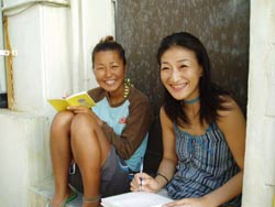 おおはしいずみちゃん&しじみちゃんこと智子ちゃんが遊びにきてくれたよ。いずみちゃんは我が教え子アドバンスダイバー!しじみちゃんは、伊豆で一度体験ダイビングをしてみたけど。なんだか????だったらしく本日は沖縄の海でリベンジです。まずは、説明⇒着替え⇒イメトレをして。ゆっくりゆっくりおよいで進んで行きました。そして本物のニモのファミリーに出会ったぁ〜。うっひゃーかわいい〜。お魚にエサをあげたり、本日の専属キャメラマンいづみちゃんが、水中写真をとってくれたり。楽しかったね。ってことで休憩をはさんで、沖縄ぜんざいを食べてから、もう1ダイブに挑戦!おおっと。しじみちゃんなんだか急にすんげい上手くなってる。1本目は鼻息がでてしまって。少し気になったようだけど。2ダイブ目はカンペキな呼吸。更には、息をはいたら静めるというコツもつかみ。スイスイおよいでた。そんなしじみちゃんをやさしいお目目で見守るいづみちゃん。モヒカン頭のツマジロオコゼや、グルクマ、ウツボなどなど、いろんなお魚をみたね。本日のダイビングは、どうでしたか?2人と遊べて楽しかったよ。また遊びにきてね〜。 |