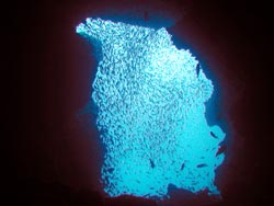 きゃ〜〜〜☆今日もいい天気!!(*^0^*)/うきうきしちゃいますね〜〜〜♪♪今日は黒田パパママと本島沖のボートダイビングです♪黒田さんたちの希望により、一本目は☆ドリームホール☆へ行って参りました!!(^0^)/ドキドキしながら真っ暗な穴をくぐって、辿り着いた先には真っ青な蒼!!!リュウキュウハタンポの大群が出口をふさいで、そこを通ると自動的にゆっくり魚が離れていき、まさに魚のカーテン!!!サイコーでしたね〜〜(*^−^)他にもドロップ沿いの、サロンシップを貼ったスミレナガハナダイや、カスミチョウチョウウオ、ドラキュラみたいなアカモンガラ、ちょっと小ぶりのイソマグロ等をみて満喫してきました!二本目には★ホーシュー★へ!!ここもがっつり地形ポイント!!−35Mに居るアケボノハゼや、ドロップ沿いに群れるキホシスズメダイ、アマミスズメダイを見ながら地形を楽しんできました♪いや〜〜窒素はだいぶたまりましたがどっちのポイントもサイコーーーでしたね!!!(^0^)私が一番興奮していたような気がしますが(笑)、またいきましょうね〜〜!!☆★今日はお疲れ様でした♪ |
