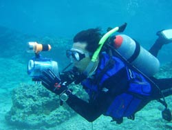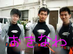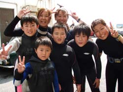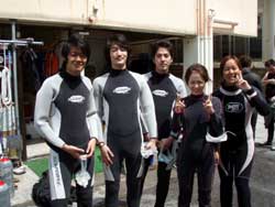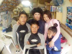 じゃーん午前の体験ダイビングは元気な沖縄チーム。名護から遊びにきてくれた、みかさん&としきくん&たかきくん&あすかちゃん(9歳です)としきくんはこの春から高校生!高校の合格祝いにみんなでダイビングにいってみよう!大作戦決行!みかさんは、バリバリのダイバーでみんなのダイビング姿を撮影してくれました。3人は生まれて初めてのダイビングですが、説明もきちんと聞いてくれました。いっぱいのお魚に囲まれたり、写真をとったり、ニモをみたり、つりをやる、としきくんは、でっかいタマンをみて興奮!!いいカタでしたなぁ〜。いつかみんなでライセンスゲットもいいかもね。また遊びにきてね〜。 |