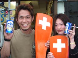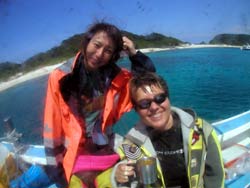 じゃーん!さっちゃん&かなちゃんのオープンウォータースクール最終日です。1ダイブ目でスキルを全て消化し泳ぎ方や潜行姿勢、中性浮力にみがきをかけ、、2ダイブ目はファイナルスキルチェックのみ。そしてみごと合格でーす!マスクの水もちゃんと出せたし、レギュレーターリカバリーもキレイに成功!ばっちりです!てなわけでその後遊びのダイビング。念願の本物のニモにご対面!ちょーかわいい〜。白いパンツ??もはいていた。。さらに子ニモもいてとってもキュート!3日間の講習はどうでしたか?今日からダイバー!おめでとう!!これからいっぱいダイビングをたのしんでね。そして沖縄にもまた遊びにきてね。お誕生日ジンベイ計画もいいかもね。またいつか一緒に潜れる日を楽しみにしているよ〜。お勉強もがんばってね。2人なら、かわいく、たよれる、いやしの力をもつステキなドクターになるだろうな。南の島から応援しているからね。またんめんそ〜れ〜。 |