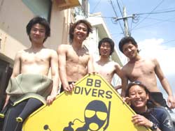 ひゃっほーい!本日の沖縄は青空!そして海はおだやか最高〜!そんなステキなお天気にバブルボックスから3名のダイバーが誕生しましたぁ〜。東京からきてくれた竹之内くん&エイジくん&コッシーでーす!なかなか飲み込みのよい3人今日の1本目でスキル全て終了!なのでラストダイブはやさしい先輩ダイバーなっつさんと一緒にファンダイブの練習です。本物のニモをみたり、おいしそうなイカがいたり、イイ人にだけくっつくウニがいたり。。 OWダイバー合格おめでとー!地球の70%は海!世界の海がダイバーのフィールドだ!これから色んな海で、いっぱいダイビングを楽しんでね!沖縄にもまた遊びにきてよ! 合格ダイブの後は、→ランチ→堤防での昼寝→更に洞窟スノーケルへGO! スノーケルには、ジュンちゃんも参加! 洞窟のある真栄田岬も海況ばっちり!外海を泳いでキラキラのお魚をみながら、洞窟内へブルーのヒカリとっても幻想的でした。 今回の沖縄の旅はどうだったかな?みんなと潜れて楽しかったよ。また次に会える日を楽しみにしています。またんめんそーれー! |