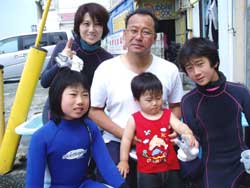 本日沖縄に到着してさっそくダイビングしにきてくれた、佐々木さんファミリーです。メンバーはひでおパパ&みさえママ&りょうくん&はるかちゃん&しゅん社長です。元気いっぱいの仲良し家族です。はじめから余裕の人も緊張の人もいましたが、みーんな水深8メートルのニモのおうちまでいけましたぁ〜!GOOD JOB !たくさんのお魚にエサをあげたり、家族みんなで写真をとったり、まっくろいナマコをみつけたりもしました。ダイビング後、しゅんくんは、オリジナル名刺を作ってプレゼントしてくれました。社長って書いてあったよ。将来社長になるのかな〜?またみんなで遊びにきてね〜。 |