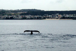 まいど〜ひろあきです☆え〜今日は天気予報では晴れの予報でしたが、あいにくの曇り空の沖縄地方でした。しかし海況は最高に穏やかでクルージング&ダイビングにはもってこいの一日でした!遊びに来てくれたのは僕の友達の、のぞみとまいちゃんです!!出航して3分・・・。急遽進路を変えた船が向かった先は読谷沖!クジラが出ていると連絡が入ったので行ってみると写真のとおりクジラくんが元気に潮を吹いて尾びれをばしばし出してました☆かなりのラッキー☆みんなこれからケラマに行く事を忘れてクジラに夢中でした。親子クジラっぽくお母さんが子供に泳ぎかたなどを教えているみたいでした。水中でも見たかったな〜★それからケラマへ到達!リクエストはカメ!!という事で海況もよかったのでカメがよくでているポイントでエントリー★☆でるかな〜でるかな〜っと緊張していたら潜って10分で大きなタイマイをゲット!!しかもあまり警戒心がなくゆっくり僕達の前を泳いでいきました。それから砂地をのんびり泳いだりエビにクリーニングされたり大満足!?の一日だったかな〜?まいちゃんはやさしい保母さん☆のぞみは来月からニュージーランドへ出陣!二人とも頑張ってこいよ〜!!沖縄から応援しています!!ではでは☆ |