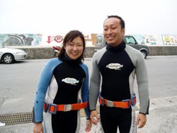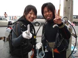 まいど〜ひろあきです!!今日も太陽がぽかぽかと顔を出し暖かい一日です。そんな中新しくダイバーになったのは、トオルさん&チサトさんのお二人です☆初日は水中マスクや呼吸にちょっと戸惑い、慣れるまで時間がかかったけど、お互いに協力してゆっくりと練習すればすすすっと水中に入る事ができるようになりました。BC操作もマスターしのんびり泳いで水中を漂うダイバーに成長しましたね★そして、苦手なマスクスキルも気合で乗り切り見事ダイバー合格です★☆★☆おめでと〜〜パフパフパフパフ〜!!ホントによく頑張りましたね!また沖縄に来た時には遊びに来てくださいね! |