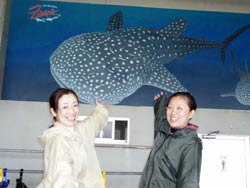 ちーーっす!今日のゲストは、ステキなレイディー、ユリさん&アキノさんでーす。2人と私は同じ年。いんや〜。196?年生まれは、やっぱりいい人が多いな〜。納得!納得!まずはジンベイサメダイビングへGO!カメラをやる2人にとって、曇り空で光がたりないのはちょっぴり残念でしたが、ジンベイの背中のサメ肌もお腹側のメタボリックな感じも、素手で触って確かめました。 そしてジンベイくんとの2ショット写真に挑戦!カメラマンの私もモデルもお二人もガンガンおよいでベスポジの撮影に挑む!ハぁーはぁーっ!元気に泳ぐ!いんやー良く遊んだ遊んだ。たーのしかった〜。お店にもどって、沖縄そばのランチのあと、砂辺で1ダイブ。赤ちゃんニモや、ちっちゃなカクレエビ、おくちあんぐりグルクマ、そしてソフトコーラルの花畑に癒されたけど、寒かった。。。今日は2人にお逢いできて、一緒に遊べてリョウコ大満足!あれれ?私のほうが満足!?お仕事も遊びも、ダメ人間も、頑張ったり、ゆるめたり、いいバランスで楽しみステキなスマイルの2人。いやーいい感じです。元気もらっちゃいました。次沖縄にいらした時は是非、一緒にのみましょうね〜。そうそう、かねひでの抽選に応募しましたよ。 |