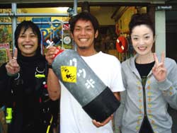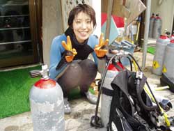9時からの体験ダイビング〜♪名古屋から来てくれたさおりちゃんとマンツーマンでダイビング〜♪さおりちゃんはガス関係のお仕事をしてるんだって。かわいいからミスガス娘??かと思ったらそんなコンテストはないらしい。。いんやぁ〜マンツーマンはいいねぇ〜。のーんびりのんびり。お天気もいいし最高!本物のニモや、ベイビーニモかわいかったねぇ〜。にょろにょろおひげのオジサンって魚やぴゅってひっこんじゃうクリスマスツリーワームもおもしろかったね。初めてのダイビングはどうだったかな?体験ダイビングででも、ライセンスコースででもまた是非是非遊びにきてね!またんめんそ〜れ〜♪そうそう、ぜんざい(カキ氷)は挑戦したかな〜? |