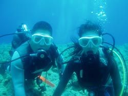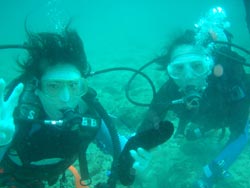 大阪から来てくれたさっちん&のんたんとの体験ダイビング〜ライセンスを持ってるさっちんはワクワク。初めてのダイビングに挑戦、チョッピリドキドキののんたん。けどけどバッチリ!2人とも耳抜きも呼吸も上手にできて、沖縄の海を堪能。クマノミの家族を観察したりお魚にエサをあげたり、写真をとったり。きょうは、ここまでの予定のはずでしたが、午後からの洞窟ダイビングに飛び入り参加!100段の階段なんてへっちゃらさー!とはりきってGO!ガンガン泳いで洞窟に到着!とーっても神秘的なブルーに感動!めちゃめちゃキレイだったね。今日はいっぱい元気にあそんだね!ナイスキャラの2人と遊べて私も楽しかったよ。またいつでも遊びににきてね。次に会える日を楽しみにしてるよ♪またんめんそーれー! |