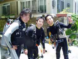 たけちゃん・修ちゃん・菊池さんと ビーチファンダビングだよ!修ちゃんは BBでライセンスを取ってから今度半年で100本という脅威的な速さでダイビングをイロイロなところで楽しんでいるのだ!すごすぎる・・・たいけちゃんはとってもいいパパで海の中でものんびり屋さんです。菊池君事タカは彼女がダイバー仲間入りでタカは アドバンスに挑戦です。今日はコンパスを頑張りました。ドキドキしながらもしっかりと モトに場所にたどり着き無事合格!2本目はディープを勉強して色の変化や圧縮rをみたり 修ちゃんとオクトでの移動練習をかなり長い間やりました。二人は出来てるの?ってぐらい・・・その後は学科に たけちゃん修ちゃんは 真栄田に移動して するるーの大群をみたり カマスの群れをみたりのんびりのんびり 4本潜りました。たけちゃん!でも階段は つらいよね〜〜親父3人 あんまり無理しないようにしないとね!次回予告 修ちゃん100本脅威的速さでをおおくりします。 |