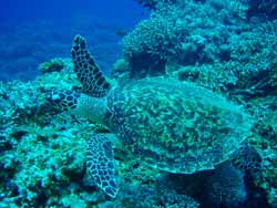 はいさーーい!!健太郎でっす!!天気最高!!!今日は那覇からケラマに行ってきましたよぉぉー!!!海況もバッチシ!!今日のラッキーダイバーまさみ!大汐さん!亮介さん!さおりさん!の4名!!1本目!!カメ狙い!ですが遠いかったぁ...水面でプカプカしてそのまま沖に消えて行ってしまいました。でもハナゴイやキホシスズメダイにノコギリダイの群れは見事でした!!2本目はサンゴに癒されよう!!DIVE!!サンゴが元気いっぱいのポイントでのんびり潜りました!!ここはものすげぇ透明度の良さでした!!今年1番っス!!45mオーバー!!!どこまでも見えてました!!すっげぇ気持ちよかったっスよぉぉー!!!お昼休憩もスノーケルで遊んで3本目はドリフトでカメを追い求める旅へ!!潜り始めてすぐに2匹のアオウミガメ!!それを見に行こうと思ったら真下に大きいアオウミガメ!!眠そうな顔してましたよ!!そこから泳いでしばらくすると今度はタイマイ!!2匹いました!!こいつらはいくら近づいてもOK!!!夢中でばりばり食事してました!!いやぁ〜首伸びすぎですねぇ(^0^)/☆最終的にはカメ6匹見れました!!!透明度も海況も良く気持ちの良い1日でした!!皆さんお疲れ様でーーす!!! |