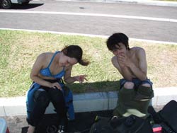 こんにちはぁ!!今日はあいにくの雨・・・ですが、元気な女の子4人組・志穂ちゃん&広恵ちゃん&メグミちゃん&理恵ちゃんが体験ダイビングをしに来てくれました!みんな水面での呼吸練習のときはなんだか、緊張気味でしたが・・・『泳げない!?』や『苦しい!?』なんて言ってた子も慣れてくるとスーイスイ自由に楽しんでいましたね(^^)みぃんなとっても上手でしたよ!!今度は真夏みたいな、暑〜い沖縄でダイビングをしましょうね!!!ダイビングライセンスにも挑戦してみて下さいね!あっつ〜〜い沖縄の海で待ってますね〜〜〜〜!! |
