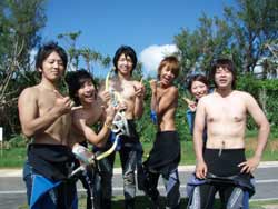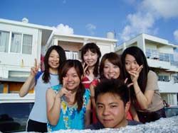15:00〜飛び入り体験ダイビングで遊びに来てくれたは旅行サークルの大学生けいこちゃん・トモカズくん・ユウイチクン・ゆうこちゃん・ゆうとくん・けいすけくん・ユウタくん・ひろみちゃん・けいたくん・あきらくんの総勢10名です!!ちょっと揺れている水面だったけどみんな問題ナッシングで水中世界へレッツラゴー★☆大量の魚に加えクマノミもしっかり観察してきました!!残りの沖縄旅行も楽しんでね!! |