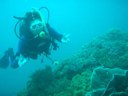 本日最後の体験ダイブ。神奈川から来た体験ダイブ初めてのミズホちゃんとマイちゃん!今回の体験ダイブのリクエストはぜっーたいニモがみたーい!との事。それならば行きましょう。ニモツアー!浅瀬の練習中は、怖い、怖い、と不安だったものの、ニモを目の前にしたらマスクこしには笑顔・笑顔(^^)更に、超チビニモ発見、感動です。ヨカッタ・ヨカッタ、念願のニモに出会えて・・・・・・帰りに見たヒトデはキモーぃと叫んでいました。かわいそうなヒトデくん。生まれ変わりはヒトデにはなりたくないなー、っと思った1日でした。 |