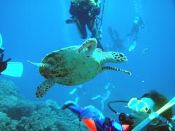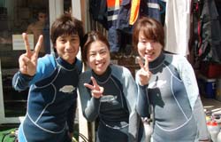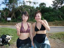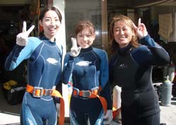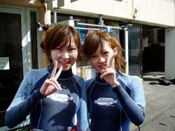 みゆきちゃん&みちこちゃんの体験ダイビングです。BBリピーターのみゆきちゃん、生まれて初めてのダイビング、みちこちゃん。2人ともバッチリ潜れましたね。心配していたみ見抜きもとってもスムーズで、すぐにニコニコスマイルをみせてくれました。元水泳部のみちこちゃんはすいすいすいーって本当に気持よさそうに泳いでいました。お魚にエサをあげたり、水中写真をとったり、おいしそうな『ハマフエフキダイ』もいました。また来年も是非遊びに来て下さいね。もちろん今年中もウェルカムですよ〜。 |