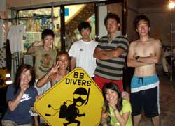 まいど〜ひろあきです!!今日もバブルボックスから愉快なダイバーが誕生しました☆元気な3人組のはっしー&だんじょう&ボンバーの三人とふみちゃんの合計4名!!今日が最終日です。そしてふらりと遊びに来てくれたクールにバイクで登場したてっちゃんの5名でワイワイ潜ってきました!!今日のsunabeは穏やかで水も透明!!大量の魚に餌付けしたり4匹の可愛いニモ家族をみたり、ソフトコーラルの大群衆をみたり今までスキルを頑張ったからこそできる自由な動きで水中を泳ぎまくりました!!今日の2ダイブを終了して見事オープンウオーター合格です!!!おめでと〜〜〜〜〜〜パフパフパフパフ〜〜〜〜!!!みんなでしっかり記念写真も撮ってきました!!またみんなでワイワイ潜れるといいね!!今度はアドバンスにステップアップかな??また遊びにきてね〜!! |