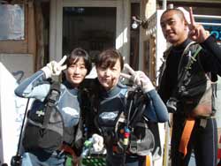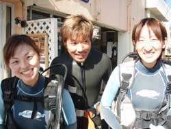 お待たせしました^^;ダイバー合格 ダイバー仲間入りした とし!あ〜たん!ゆう!なっちゃんです。いや〜海日記 遅くなりご迷惑をおかけしています。4名は 元々知り合いではなかったのだけど 3名はドミトリーでなかよくなり なっちゃんは BBでみんなと友達になりました。海っていいね〜沖縄っていいね〜 最高です。そして そして無事に 4名合格です^0^ 見た目より 実はやさしく しっかりしている トシ!ぼ〜〜っとしているけど 意外と自分をもっている ゆう!、海の中でも 陸でも興味心おうせいで すっごい携帯をもっている あ〜たん!4人の中ではねーサン的存在だけど まだまだ若い なっちゃん!みんな おめでとう〜また 沖縄に遊びに来てね。待ってるぞ〜〜い!! |