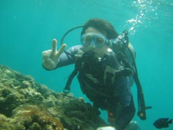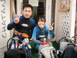 こうきとれいちゃんダイバー仲間入りおめでとう〜れいちゃんは 理解力が早く とっても今回は楽をさせてもらいました^0^ 海でも 冷静にイロイロな事を 練習 中性浮力もかなりわかってくれいい生徒でしたよ。次回は ケラマや もっとお花畑をのんびり紹介したいですね。もしくは アドバンスにでも挑戦してみますか?れいちゃんなら 楽勝ですよ きっと これからも 仲間と一緒にステキな海 可愛い魚と出会ってくださいね。次回は ゆっくり もぐって ゆっくり 飲もうね楽しみにしています^0^! |